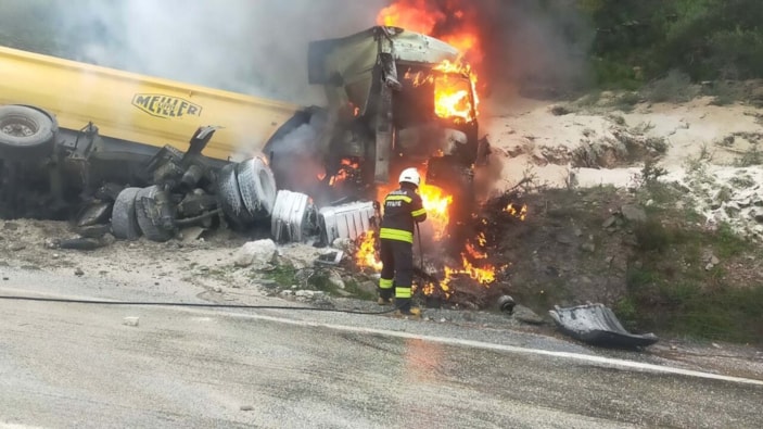 İtfaiye erleri tarafından yangın söndürülürken, kamyonun şoförü Mahmut Bulut hayatını kaybetti.