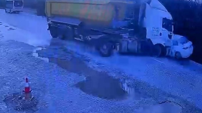Muğla'nın Bodrum ilçesi Güvercinlik-Mumcular yolunda İdris K.’nin (55) kontrolünü yitirdiği hafriyat kamyonu karşı şeritten gelen Mehmet Alper Emiroğlu'nun kullandığı otomobil ile sürücüsünün ismi henüz öğrenilemeyen otomobile çarptı.
