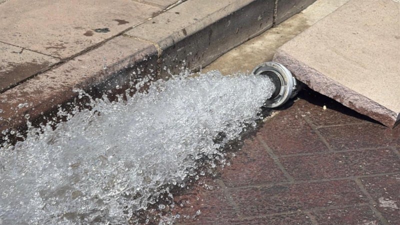 Henüz belirlenemeyen nedenle patlayan ana su isale hattından fışkıran su, caddeyi adeta dereye çevirdi.