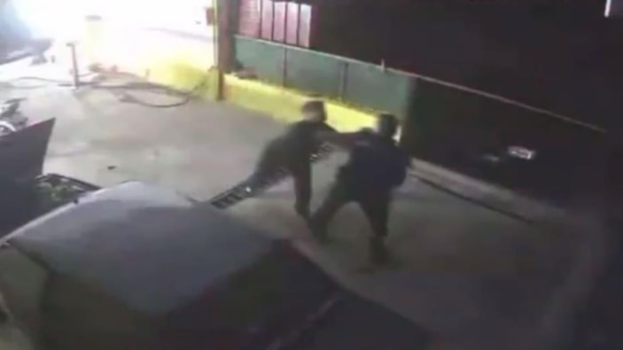 Görüntülerde, şahısların polis ekiplerine saldırdığı ve sonrasından yaşanan arbede yer alıyor.