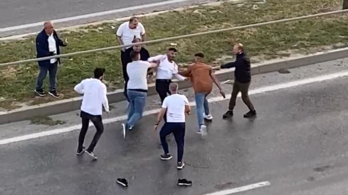 Görüntülerde grubun birbiriyle kavga ettiği, daha sonra gruptan bir kişinin yerde yatan bir kişiye tabancayla ateş ettiği anlar da yer aldı.