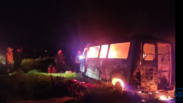 Datça İlçe Emniyet Müdürlüğünden yapılan açıklamaya göre, Polis Merkezi Amirliği ekipleri devriye halindeyken bir minibüsün yandığını görmesi üzerine durumu jandarma, itfaiye ve sağlık ekiplerine bildirdi.