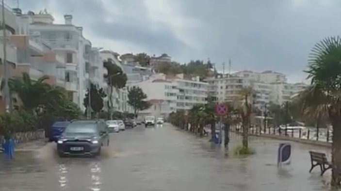 Halitpaşa Mahallesi'nde sokak ve caddeler su altında kalırken, sahil yolu göle döndü.