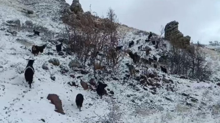Aniden bastıran kar, otlatmak için kırsala çıkarılan sürüye zor anlar yaşattı. Besicilerden Abuzer Güngör, “Etkili olan yağmur yerini kar yağışına bıraktı. Hayvanlarımı dağda otlatırken kar yağışı etkisini artırdı" dedi.