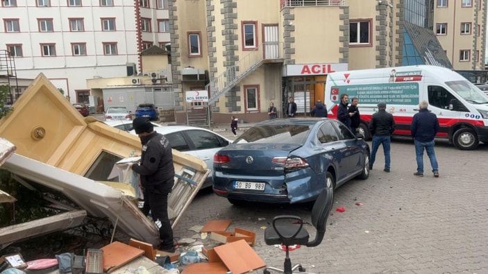 Yol üzerindeki özel bir hastaneye gitmeye çalışan Atıf B., hastaneye girerken önce güvenlik kulübesine, daha sonra da park halinde bulunan 50 ABL 754, 38 YE 964 ve 50 BG 989 plakalı üç farklı arabaya daha çarptı.