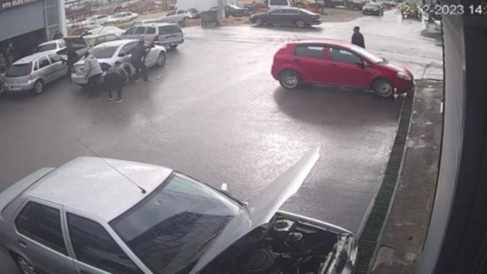 Öte yandan olay anı çevredeki bir iş yerinin güvenlik kamerasınca kaydedildi.