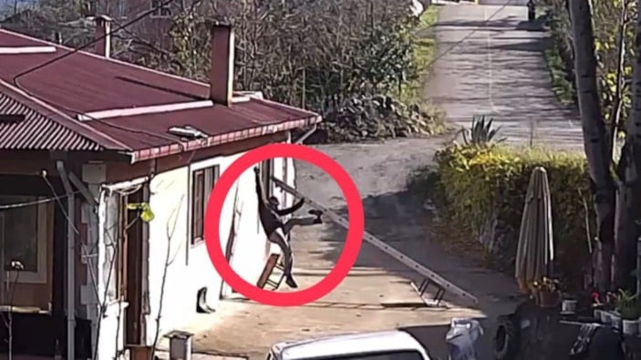 Atıf Güngör’ün çatıdan düşme anı ise çevredeki bir evin güvenlik kamerasına yansıdı.