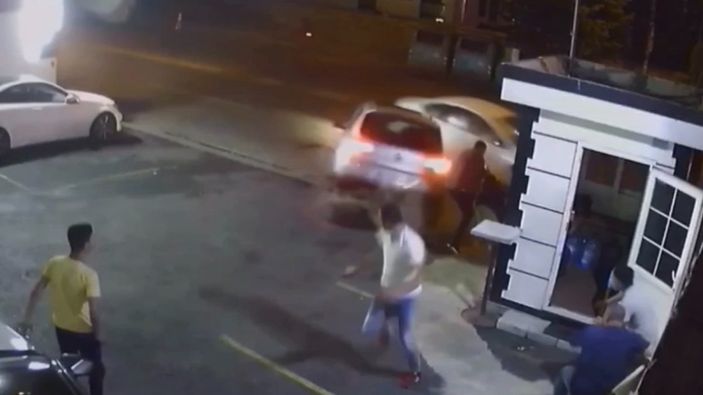 Sandalyede oturan Murat Toptamış ve arkadaşı Sabri A. ise saniyelerle ölümden kurtuluyor. Kadın, kazanın şokuyla araçtan inerken, çalışanlar ise panikle etrafa kaçışıyor.