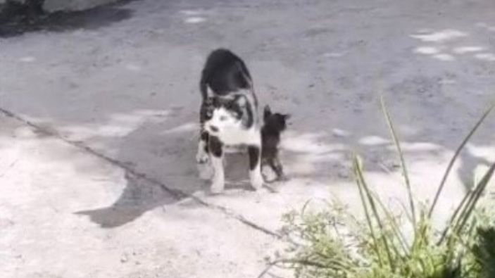 Osmaniye'de anne kedi, çukura düşen yavrusunu bekledi