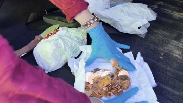 Otomobilde yapılan aramada, bagaj kısmında çanta içerisinde Darphane ve Damga Matbaası Genel Müdürlüğünün izni dışında basıldığı belirlenen piyasa değeri yaklaşık 6 milyon 500 bin Türk Lirası olan 209 tam altın, 100 yarım altın ve 204 çeyrek altın olmak üzere toplam 513 altın ile 2,59 gram esrar maddesi ele geçirildi.