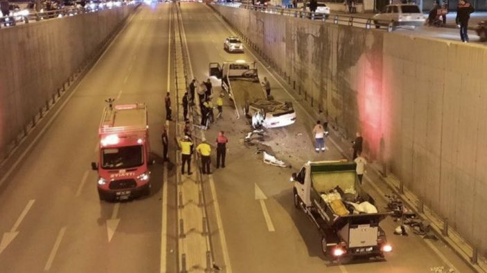 Sürücüsünün kontrolünü kaybettiği otomobil, demir bariyerleri aşarak yaklaşık 5 metre yükseklikten alt geçide düşerken, kazada 1'i ağır 3 kişi yaralandı.