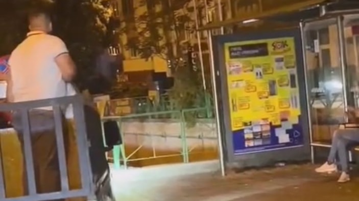 Kentteki bir grup genç, akşam saatlerinde otobüs durağında bekleyen kadına yangın söndürme tüpü sıkıp hızla uzaklaştı.