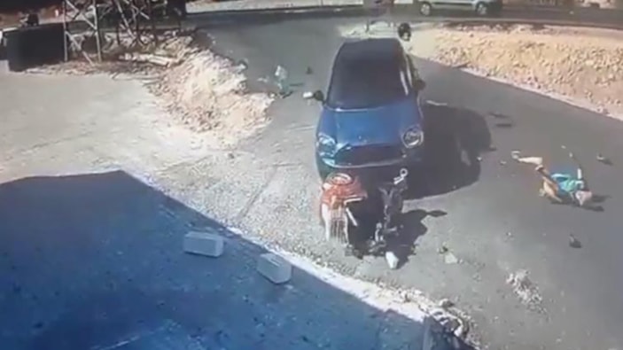 Muğla'da otomobilin elektrikli bisiklet ve duvara çarptığı anlar kamerada