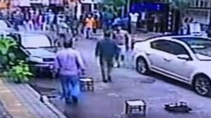 Güvenlik kameraları tarafından kaydedilen görüntülerde, patlama ile sokağa fırlayan kapak, yol üzerindeki park halindeki araca saplanıyor. O sırada sokaktan geçen bir kişi, birkaç adımlık mesafeyle kapağın kendine çarpmasından kurtuluyor.