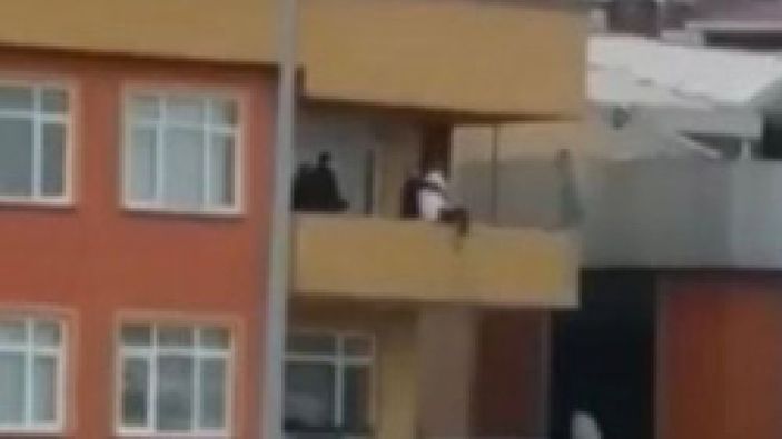 Polisin, 4. kattaki evin balkonuna çıkarak intihara teşebbüs eden kadını kurtardığı anlar, cep telefonu kamerasına yansıdı.