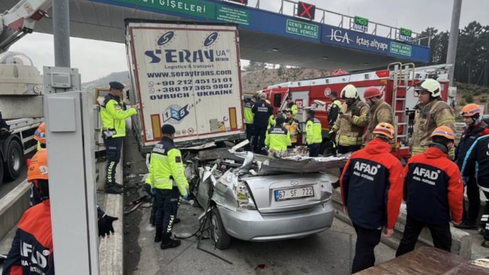 İstanbul'un Pendik ilçesine bağlı Kuzey Marmara Otoyolu Kurnaköy gişeleri Ankara istikametinde hızla gelen otomobil, gişelerde ödeme yapmak için duran tırın altına girdi.