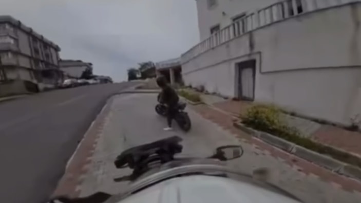 Polis memurunun plakasız motosikletliyi kaçmamaya ikna ettiği anlar kamerada