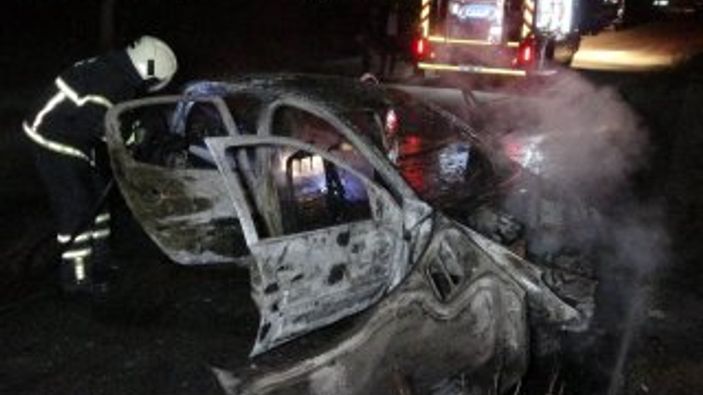 Polisten kaçan sürücünün otomobili, kaza yaparak yandı