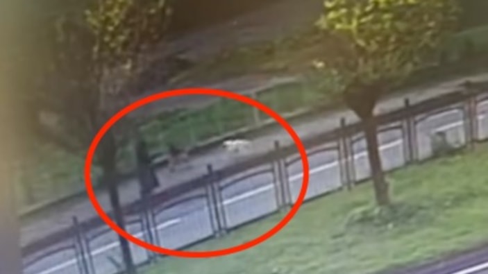 Kadın saldırıdan yara almada kurtulurken, o anlar çevredeki iş yerinin güvenlik kamerasına yansıdı.