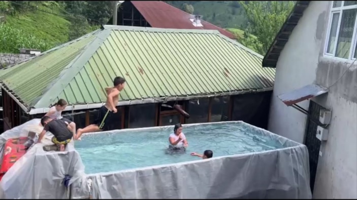 Rize'de kamyon kasası havuza dönüştürüldü: Çocuklar yüzerek keyif yaptı