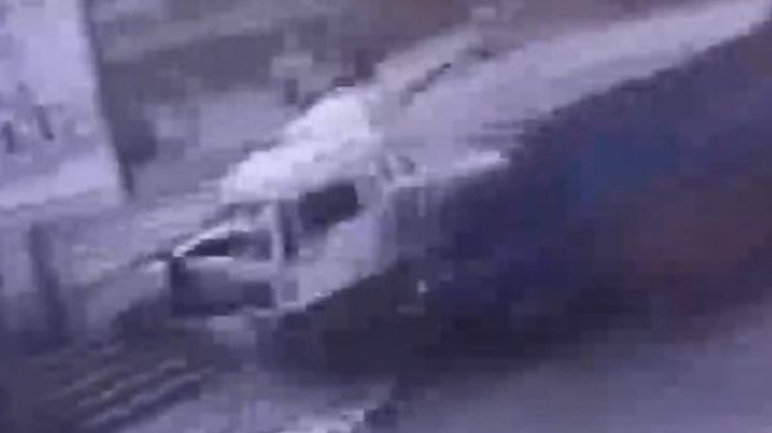 Güvenlik kamerasınca kaydedilen görüntülerde, kamyonun otomobillere çarparak ilerlediği ve başka bir kamyona daha çarptığı görüldü.