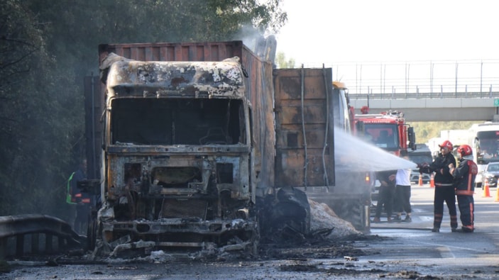 Kısa sürede alev topuna dönen tırlar tamamen yanarak kullanılamaz hale geldi.