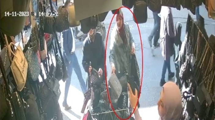 Adapazarı ilçesinde bir yaşlı kadın, alışveriş yaptığı çanta dükkanından seçtiği bir çantayı çaldı. Yaşlı kadının, hırsızlık sırasındaki tavırları dikkat çekti.