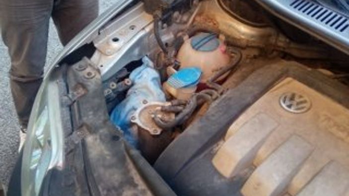 Ekipler, otomobilde yaptığı aramada kaputa gizlenmiş silah ve para ele geçirdi.