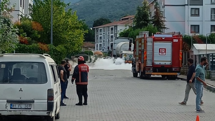 Sakarya'nın Sapanca ilçesi Gazipaşa Mahallesi'nde park halindeki tankerde oluşan sızıntı ekipleri harekete geçirdi.
