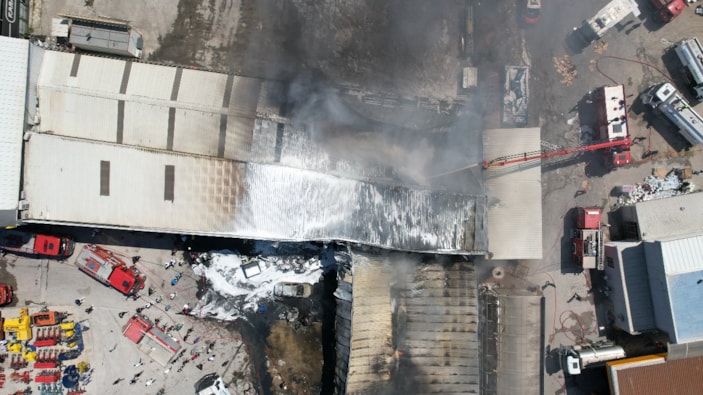 Yangına müdahale ve olay yeri havadan da görüntülendi.