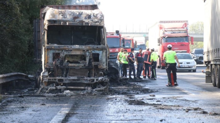 Çarpışmanın etkisi ile her iki tır alev aldı.