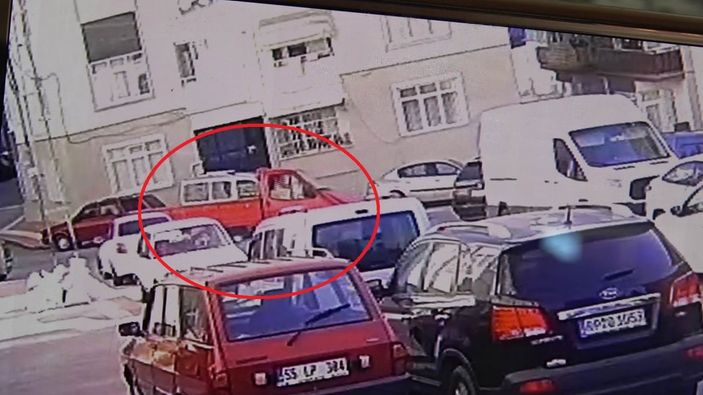 Mahalle sakinleri kaçan aracın plakasını alamazken, kırmızı renkli kamyonetin bir otomobile çarpıp yokuş aşağı kaçma anı ise olay yerinde bulunan güvenlik kamerasına yansıdı.