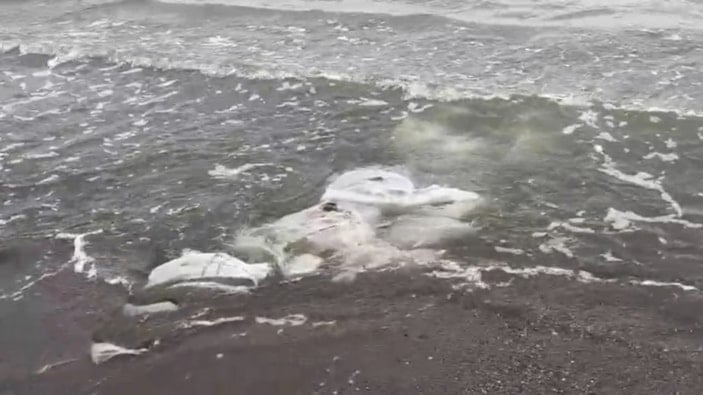 Çevrede bulunan kişiler, yaşanan durumu cep telefonu kameralarıyla görüntüleyerek kayıt altına aldı. Görüntülerde, çuvalların deniz yüzeyinde sürüklendiği anlar yer aldı.