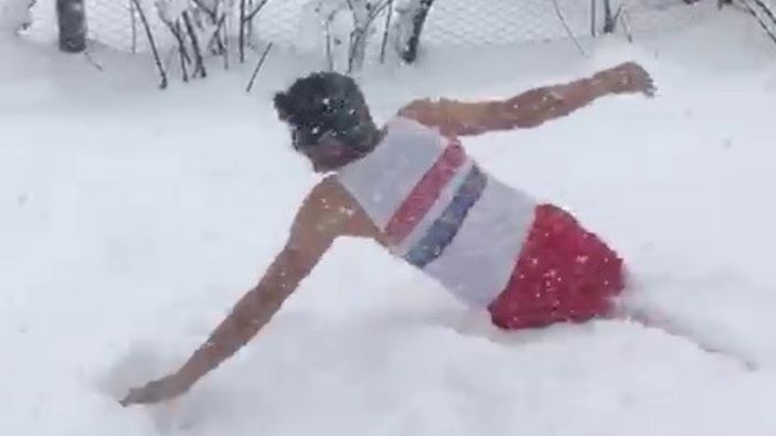 Soğuğa aldırış etmeden soyunup karın tadını çıkaran kardeşler, tebessüm ettirdi. Karın içinde kulaç atan kardeşlerin mutlu anları kameraya yansıdı.