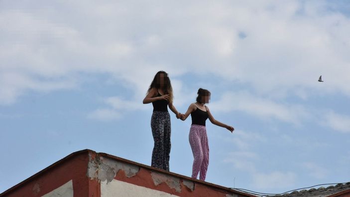 Kavga sırasında 2 kız, binadaki camları kırarak çıktıkları çatıda intihara kalkıştı.