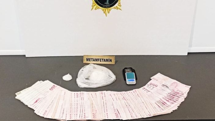 Polis ekipleri yaptıkları operasyon ile 38,24 gram metamfetamin ve uyuşturucu madde ticaretinden elde edildiği değerlendirilen 28 bin 300 TL nakit para ele geçirdi.