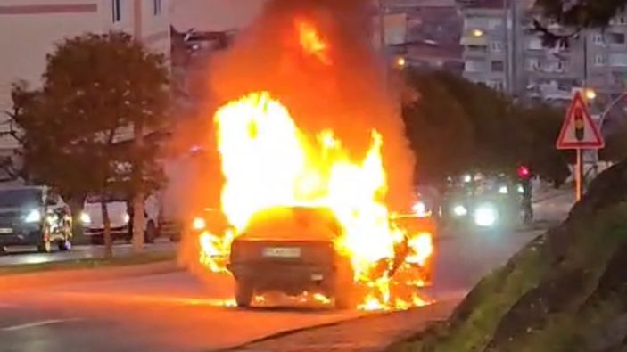 İlkadım ilçesinde seyir halindeyken yangın çıkan otomobil kullanılamaz hale gelirken o anlar bir vatandaşın cep telefonu kamerası ile kaydedildi.