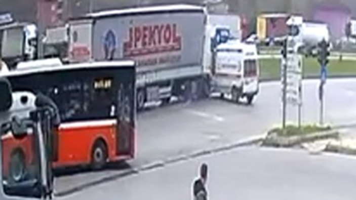 Samsun'da tır ile ambulansın çarpıştığı, 1 kişinin yaralandığı kaza güvenlik kamerasına yansıdı.