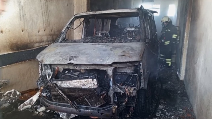 Samsun'un Bafra ilçesi İshaklı Mahallesi'nde bulunan bir apartmanın altında park halindeki Ahmet Kurt'a ait minibüste yangın çıktı.