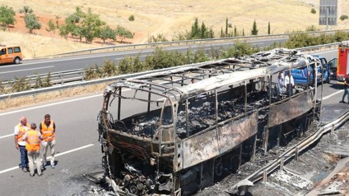Şanlıurfa-Gaziantep otoyolunun Şanlıurfa gişeleri yakınlarında Emin Özalp'in kullandığı 07 MPZ 54 plakalı yolcu otobüsü, seyir halindeyken bilinmeyen nedenle alev aldı.