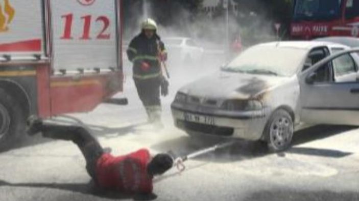Alevleri fark eden Şengül, otomobilini yol kenarına çekerek itfaiyeden yardım istedi. İhbar üzerine gelen itfaiye ekiplerinin müdahalesinin ardından söndürülen yangın sonrası otomobil, kullanılamaz hale geldi.
