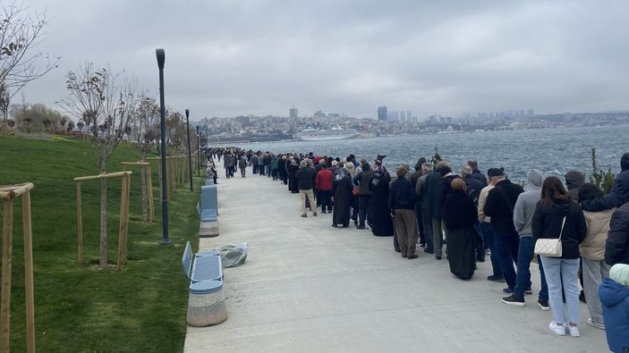 Sarayburnu Limanı'nın sahile yakın noktadaki girişinde sabahın erken saatlerinden itibaren bekleyen yüzlerce kişi metrelerce kuyruk oluşturdu.