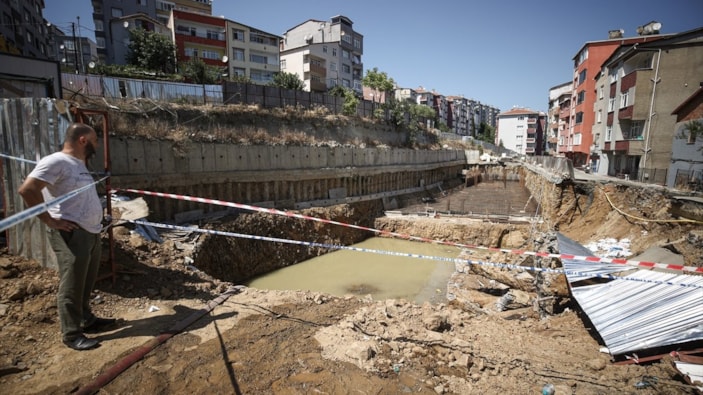Öte yandan inşaat alanı ve yoldaki çökme anı vatandaşlar tarafından cep telefonuyla kaydedildi.