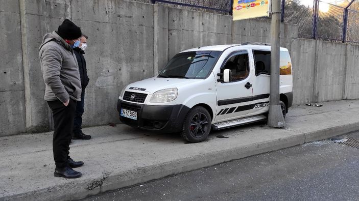 Polis, kaldırımda duvarla aydınlatma direği arasına sıkışan araç için tutanak tuttu. Araç bir süre itilerek sıkıştığı yerden kurtarılmaya çalışıldı. Ancak hafif ticari araç bulunduğu yerden çıkarılamadı.