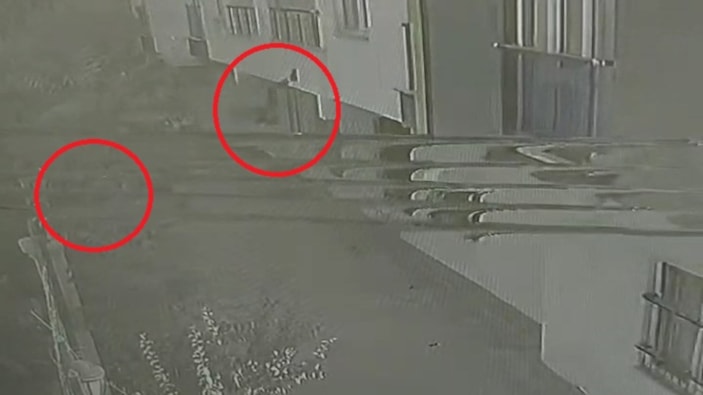 Çocuklardan biri, bina duvarına çarptıktan sonra zemine düştü.