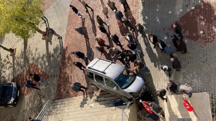 Kontrolden çıkan araç, cadde üzerinde bulunan hükümet konağının merdivenlerine çarparak durdu.