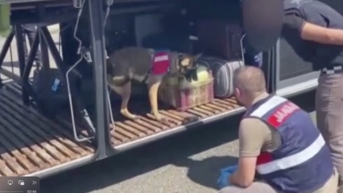 Otobüsün emanet bölümünde bulunan ve narkotik dedektör köpeğinin tepki verdiği bavulda yapılan aramada, 40 kilogram kubar esrar bulundu.