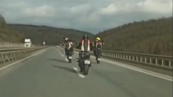 Hem kendilerinin hem de trafikteki diğer sürücülerin hayatını tehlikeye atan motosikletlilerin o anları, bir aracın sürücüsü tarafından cep telefonu kamerasıyla kaydedildi.