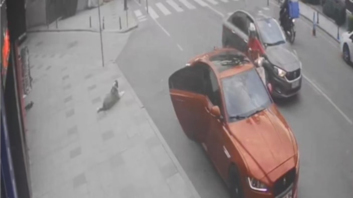 Motosikletli kadın, hemen yanından geçen başka bir aracın altında kalmaktan son anda kurtuldu. Kapıyı açan sürücüye tepki gösteren kadın, çevredekilerin yardımıyla ayağa kalktı.