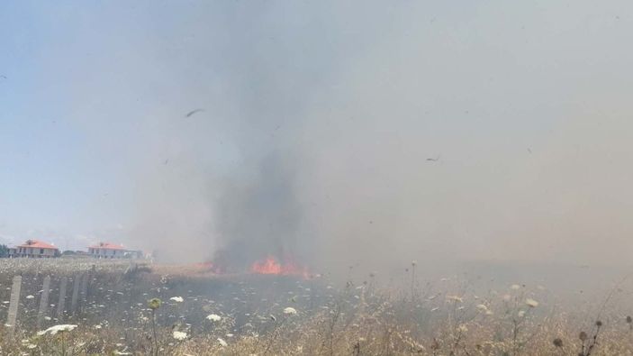 Yangın çıkan buğday tarlasına itfaiyenin müdahale etmesine karşın, şiddetli rüzgar nedeniyle yangın güçlükle söndürüldü.